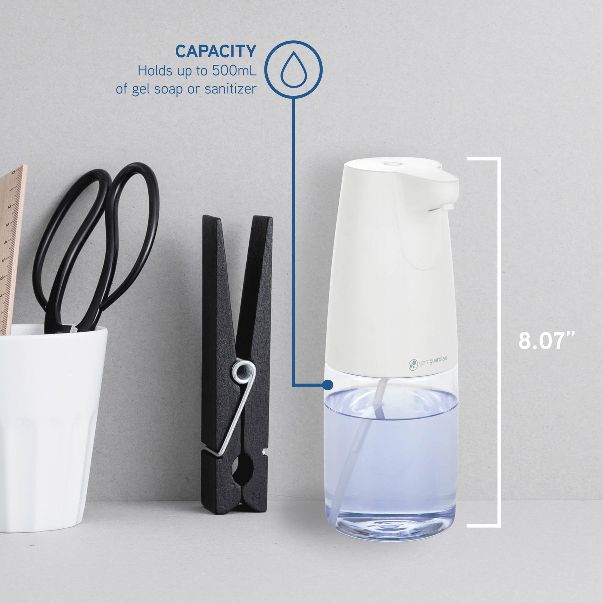GermGuardian SD410 Distributeur automatique de savon et de désinfectant mains libres pour bureau, école, maison et plus, grande capacité 500 ml
