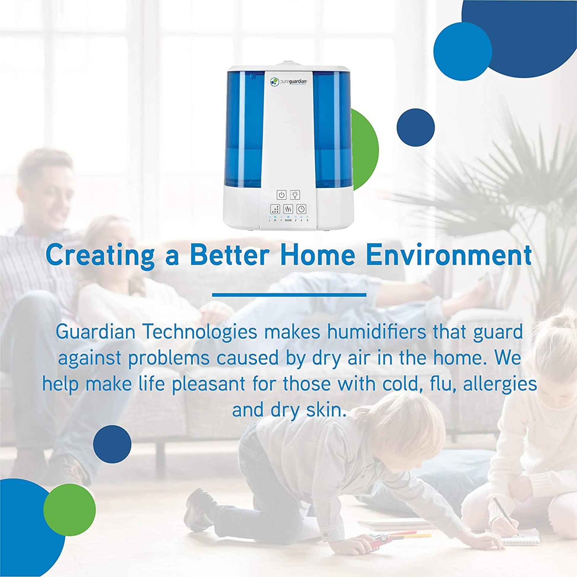 PureGuardian H5225 Top Fill Ultrasonic Cool and Warm Mist Humidifier with Aromatherapy Tray, 2-Gallon