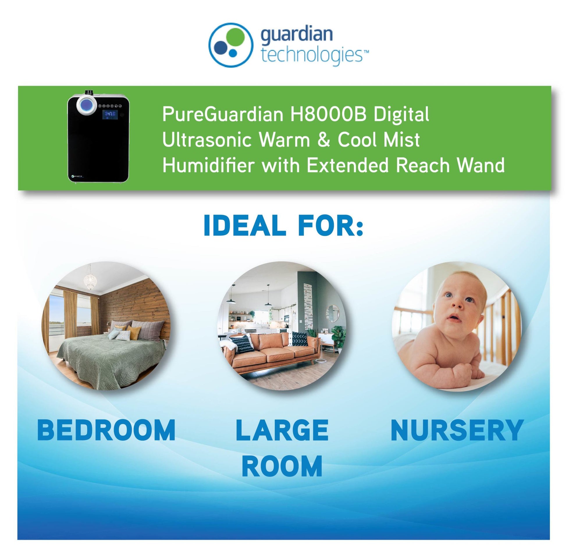 PureGuardian H8000B Elite Ultrasonic Warm Mist & Ultrasonic Cool Mist Digital Humidifier with Extendable Wand